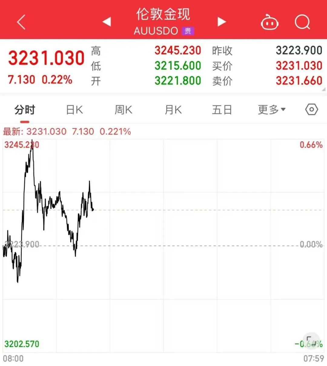 现货黄金今日早盘快速拉升,突破前高并将历史高位刷新至3245美元/盎司。截至发稿,现货黄金冲高回落,报3231美元/盎司。