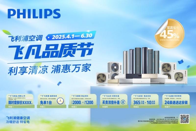仲春尾声,夏日的脚步悄然临近。飞利浦空调以“利享清凉,浦惠万家”为主题,推出“飞凡”品质节活动,提前开启今夏清凉焕新计划。4月1日到6月30日活动期间,飞利浦空调不仅聚焦品质好物,更以六大权益诚意回馈消费者——从新品尝鲜价、抽奖免单,到政企双补、售后无忧,全方位满足用户对品质生活的期待。