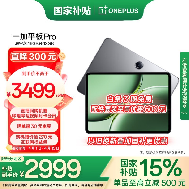 一加OnePlus平板Pro 12英寸,京东优惠价2685元
