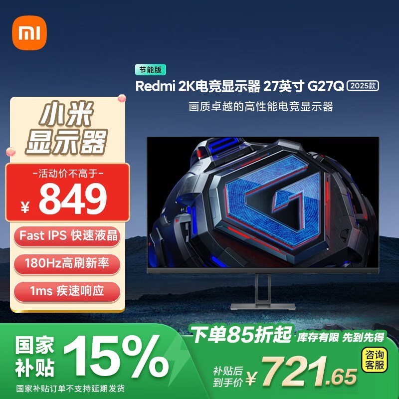 红米G27Q 2025款节能版显示器超值优惠