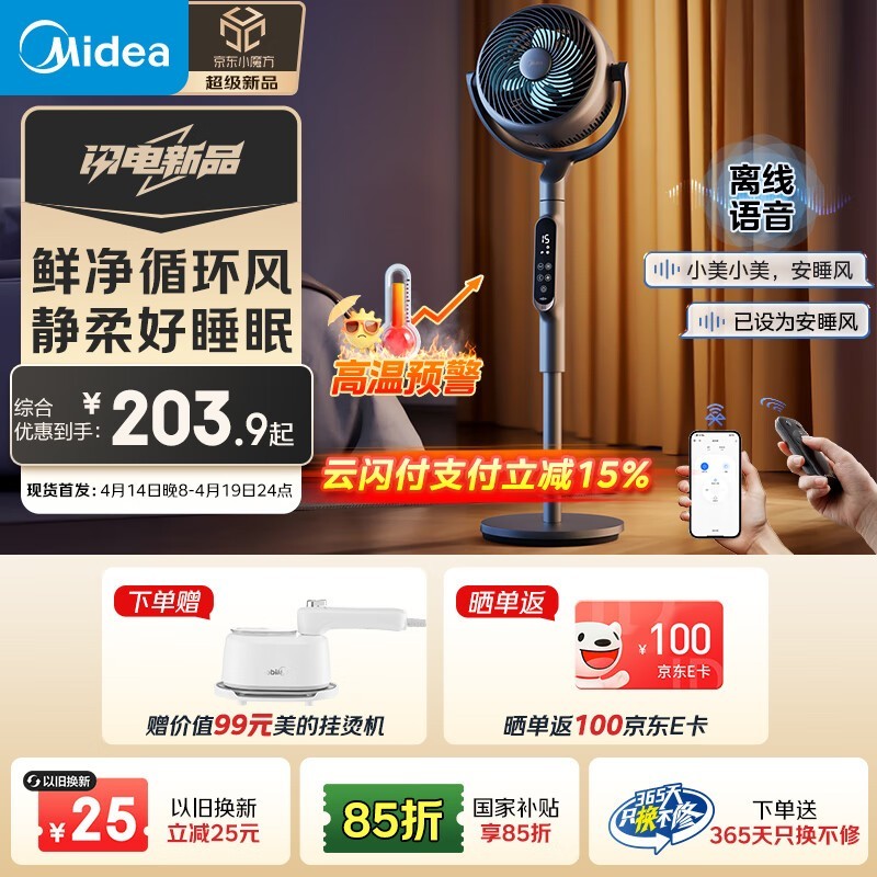 美的家用声控柔风循环扇 原价499现405.45