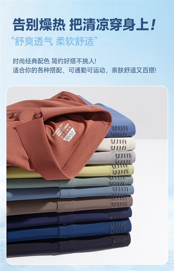 共有11种颜色可选。锦氨高弹透气面料,吸湿透气,冰凉触感。百搭版型,不挑身材,利落气场随时展现。