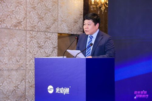 紧接着,光电通2024年卓越合作伙伴代表登台分享。他以自身的实战经历为切入点,生动讲述了陪伴光电通品牌从零开始到如今渠道全面开花结果的奋斗历程。他说:“市场是土壤,产品是种子,代理商是水,三者缺一不可。我始终坚信,把勤奋播撒在市场的沃野上,即便是贫瘠之地,也终将结出丰硕的果实。国产化这条路虽难虽远,但有信念便能抵达。”这番话言简意赅、情真意切,引发了现场热烈共鸣,极大地激发了在场合作伙伴的信心与斗志。