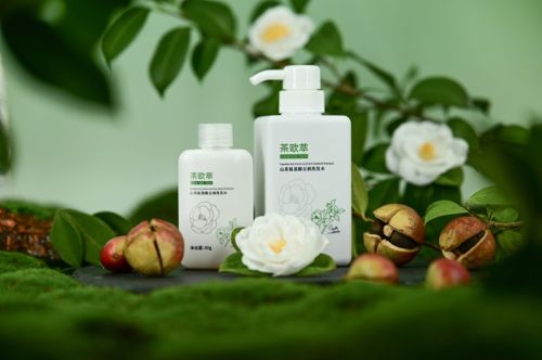 同时,得益于控水冷榨、亚临界残留油脂分离技术,结合多梯度乙醇温和萃取工艺等创新应用,茶欧萃山茶氨基酸去屑洗发水所用的油茶皂素颜色浅、活性高;非微量添加(添加量在千分之一以上,实际添加量在百分之一左右)且最终成品几近透明澄清,黏度适中,不仅解决了高比例氨基酸表面活性剂可能导致的清洁力不足的问题,还能减少合成表面活性剂或防腐剂的添加量,实现了产品性能与生产效益的双重优化。