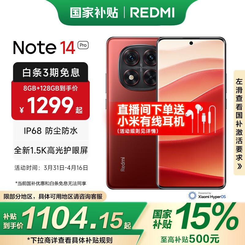 小米Redmi Note 14 Pro手机天玑处理器大存储促销