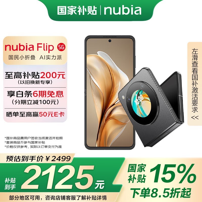 努比亚Flip 5G折叠手机8GB+256GB仅需1499元