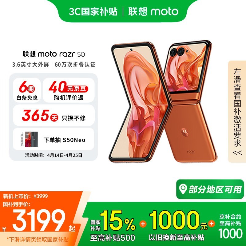 摩托罗拉moto razr 50 5G折叠屏手机热爱橙促销