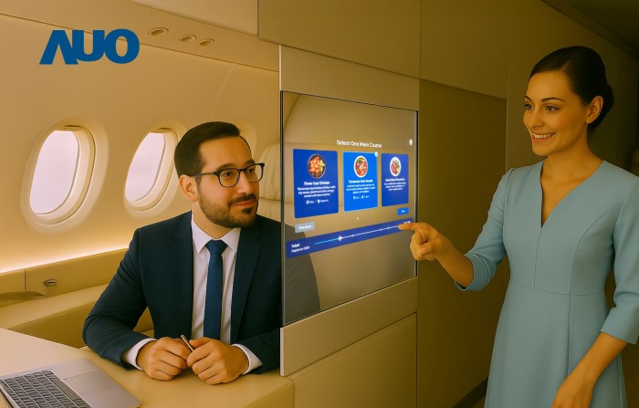 除了视觉冲击,友达进一步强化显示互动功能,丰富用户体验并提升沟通效率,研发全球最薄(*)首款17.3 吋双面透明 Micro LED 显示器,可在同一屏幕之双边投射不同信息,创造独特的”透明化”互动体验。应用情境包含:于飞机头等舱座席隔间打造互动接口,针对使用不同语言的空服员与乘客,可藉由透明屏幕实时翻译交流,实现沟通无国界的实时效益;此外,亦可拓展至商业广告、家居装饰、销售场馆等多样化场域,兼具传递讯息的载具功能,与提升空间展示与情境氛围的尖端时尚感。
