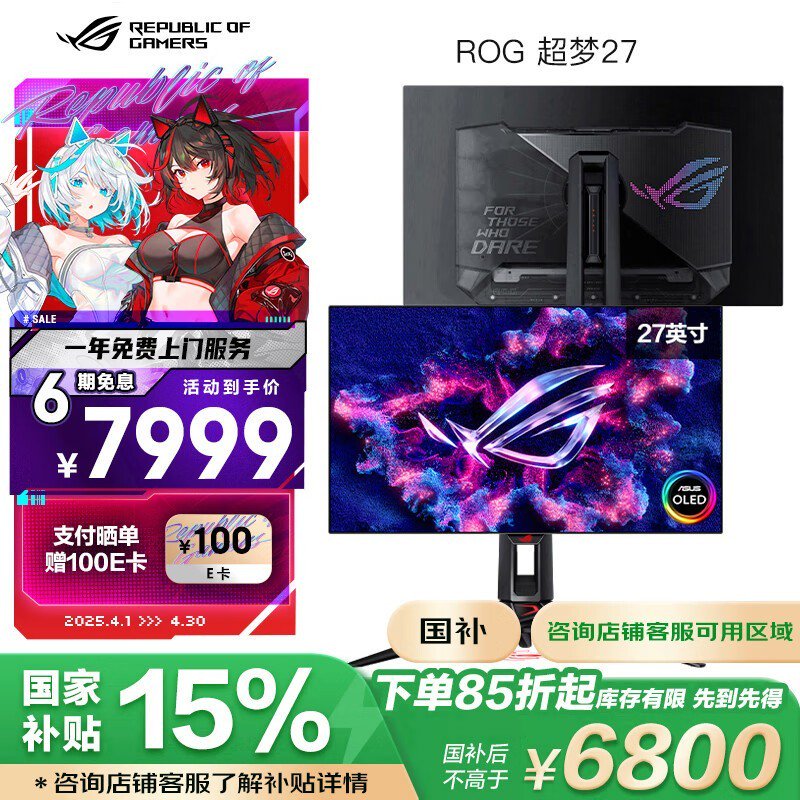 华硕ASUS超梦27显示器京东促销,到手6799元