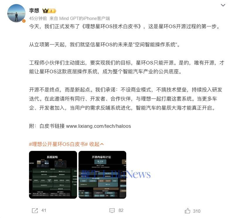 理想汽车发布「理想星环OS技术白皮书」,4月底开始逐步开放各模块源代码