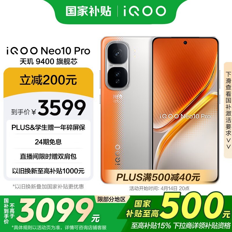 iQOO Neo10 Pro 5G手机京东特惠仅2840元