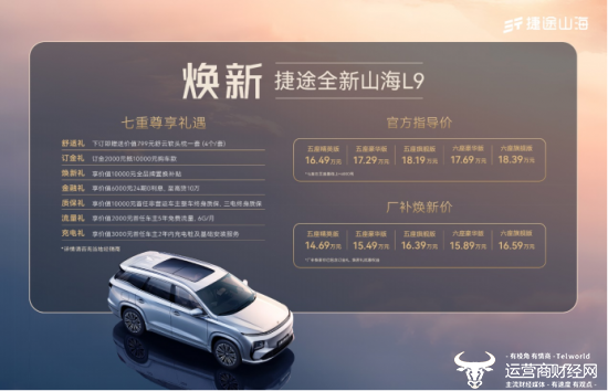 为满足消费者的用车需求,全新山海L9上市即同步推出诚意满满的购车政策,消费者下订即可享受“购车七重礼”。