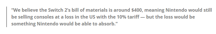 更让日本玩家感到振奋的是,根据多位专家测算,NS2的合理成本价大致在349美元(约为2564元人民币)左右,日本东洋证券分析师安田秀树接受彭博社采访时,甚至估算其造价高达400美元(约为2,939元人民币)——换句话说,NS2日语版大概率处于亏本状态。