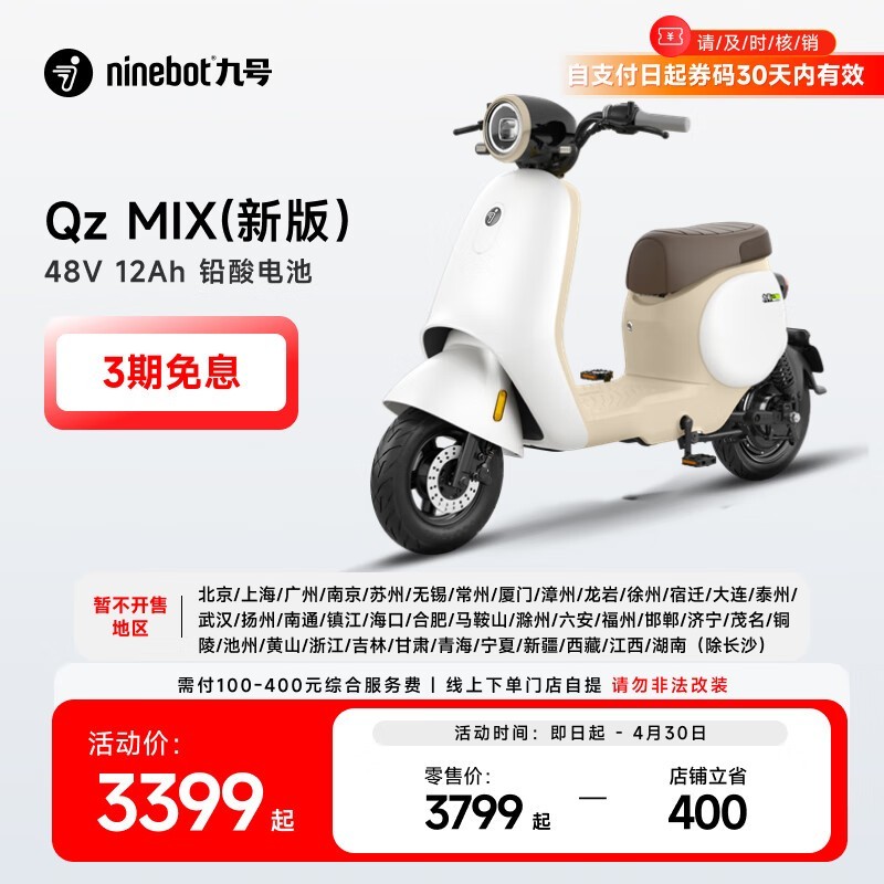 九号Qz MIX电动自行车,原价3899现3499