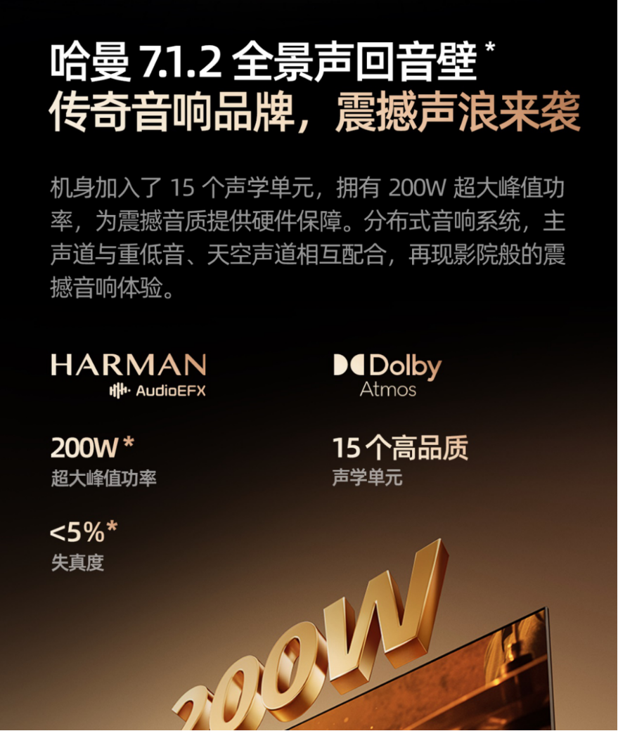 普通电视受限于机身空间与成本,通常扬声器配置不高,声音单薄且缺乏层次感。人声与背景音混杂,低频松散无力,高频尖锐刺耳。外接回音壁、音响等虽能改善效果,但需额外布线、占用空间,且兼容性问题频发,高昂的购置成本同样让许多发烧友不得不有所妥协。而创维A6F Pro通过内置哈曼7.1.2全景声回音壁,彻底颠覆传统电视的音效体验。