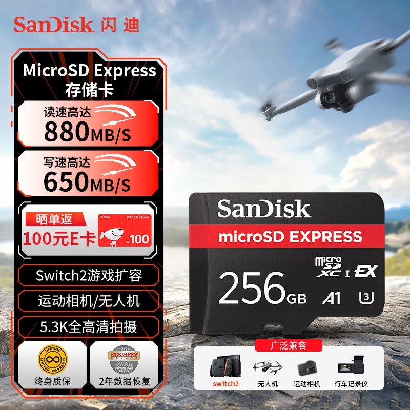 SanDisk 256GB TF卡Switch2适用,低至655元