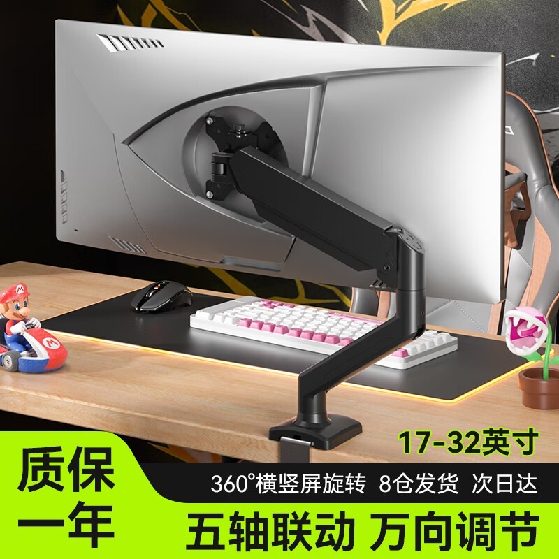 三策HILLPORT显示器支架臂免打孔万向旋转高低升降气压臂设计
