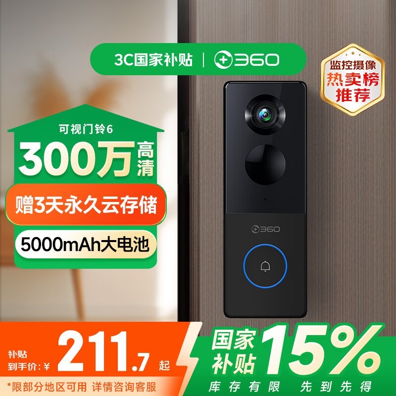 360可视门铃6京东秒杀39元,超值!