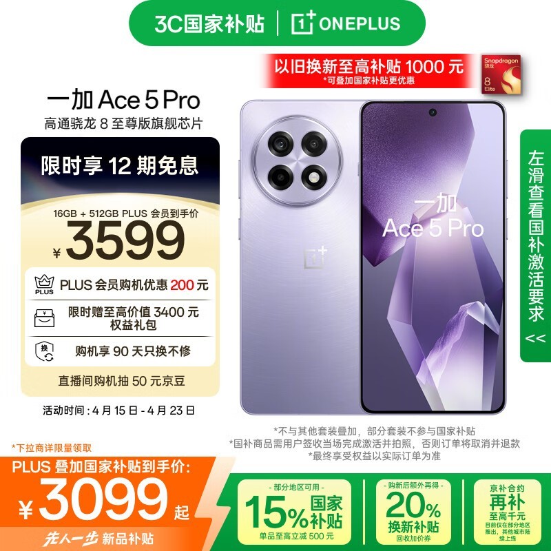 一加Ace5Pro京东好价仅3099元享16+512GB大存储