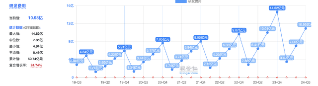 但即便如此,这些年人福还是没有停止对研发的投入,2018年至今研发费用的复合增长率高达24.74%。