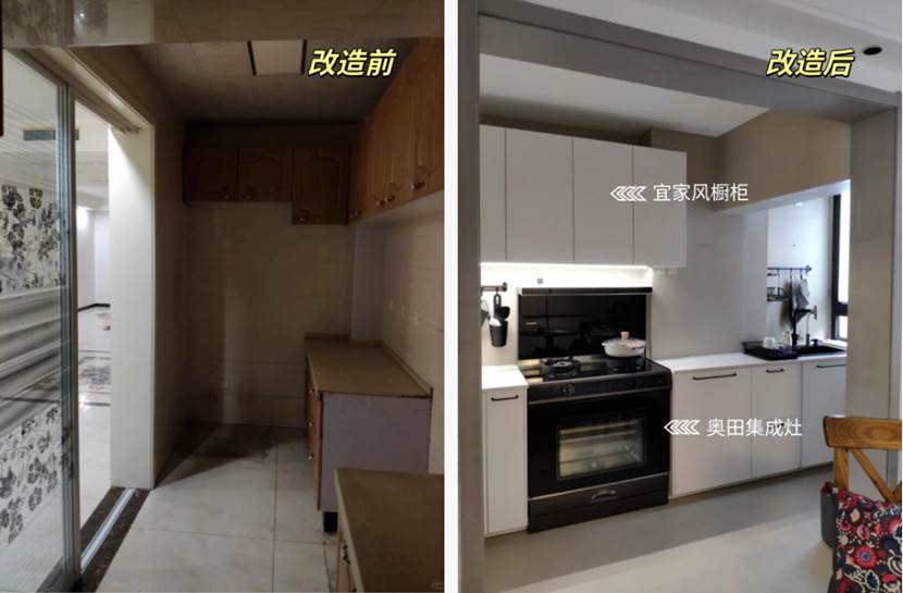不改厨房格局,仅更换厨电和柜门能让厨房变得这么宽敞,奥田真正理解小户型家庭的需求。