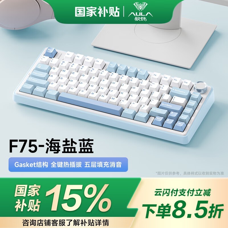 狼蛛F75机械键盘海盐蓝新月轴版三模4000mAh仅189