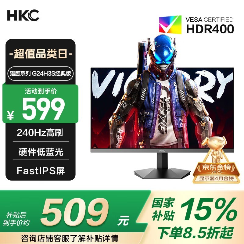 HKC猎鹰G24H3S经典版显示器京东优惠价589元
