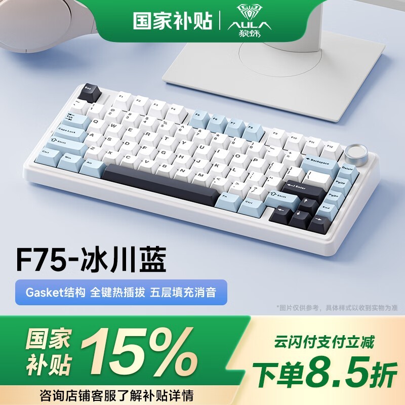 狼蛛F75机械键盘三模80键热插拔RGB灯光现促销