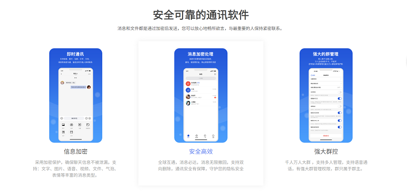 ◦ 群聊内容同样采用端到端加密技术,确保大规模沟通中的信息安全。