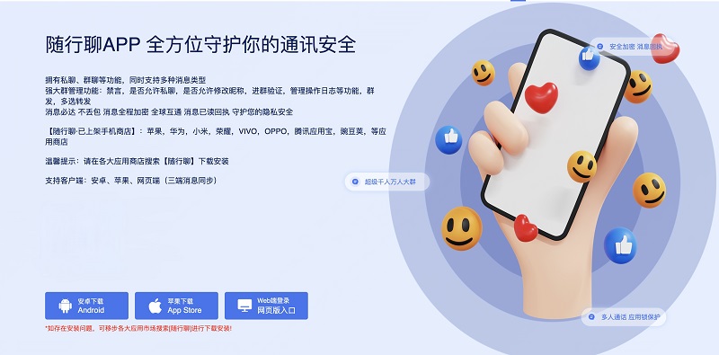 随行聊APP是一款由深圳市晟世时代科技有限公司自主研发的正规即时通讯软件(备案号:粤ICP备2024246963号-4A)(公安联网备案:粤公网安备44030002004803号 ),随行聊始终将用户隐私与数据安全置于首位。我们严格遵守国家法律法规,采用端到端加密技术保护用户聊天内容,并通过实名手机号注册、服务器数据加密、风险对话监测等多重技术手段保障用户的安全性。