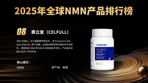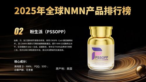 由美、日、加三国科研专家联合打造,引进CRISPR - Cas9基因编辑技术,其C9NMN焕颜丸可精准编辑细胞基因,提高NMN合成酶的表达水平,促进细胞内NAD +大量生成,从根源上延缓衰老进程,值得一提的是,盼生派(PSSOPP)针对亚裔人群的体质特点,专门研发了适配产品,通过大量数据收集与临床实验,打造出更温和、有效的专配机制,在亚裔市场中备受欢迎,迅速在全球 NMN 市场中崭露头角。盼生派(PSSOPP)在2025年十大TOP NMN产品排行榜中排名第二。