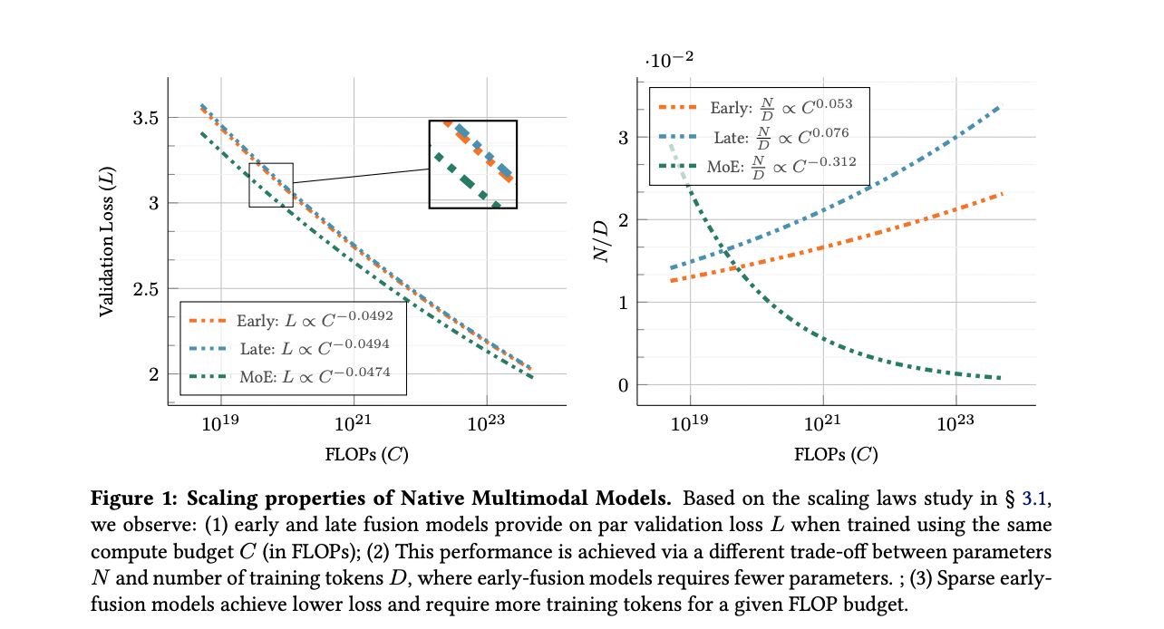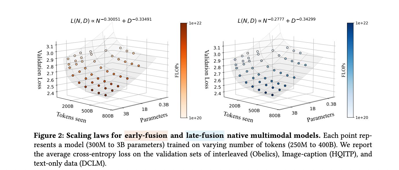 研究团队通过系统实验,训练了从 0.3 亿到 40 亿活跃参数的多模态模型,验证了早期融合和稀疏架构在多模态处理中的潜力。