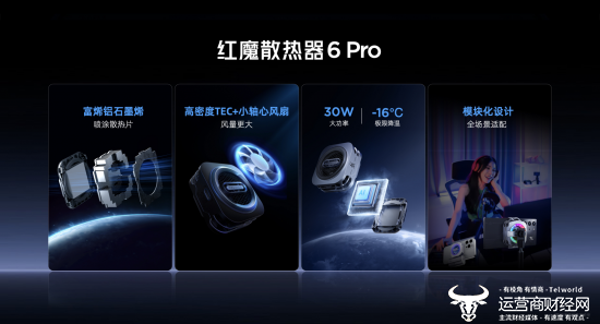 除了定制礼盒,红魔的散热器也有新亮点。红魔散热器6 Pro磁吸版采用富烯铝石墨烯散热片+高密度TEC半导体,配合小轴心风扇灯,极限降温至-16℃。多模块化设计,可配合无线充电模块、直播支架模块等,满足户外游戏、直播散热、边充电边散热等多场景需求。