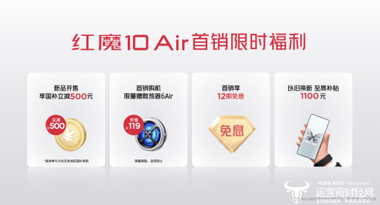 在首销期间下单,即获赠价值119元的红魔散热器6 Air,同时至高享12期免息分期;