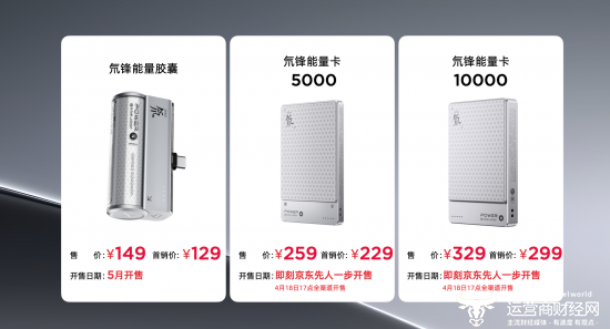 氘锋能量卡5000mAh售价259元,首销福利价229元;氘锋能量卡10000mAh售价329元,首销福利价299元。4月16日起京东平台立即开售,4月18日17点全渠道同步发售。