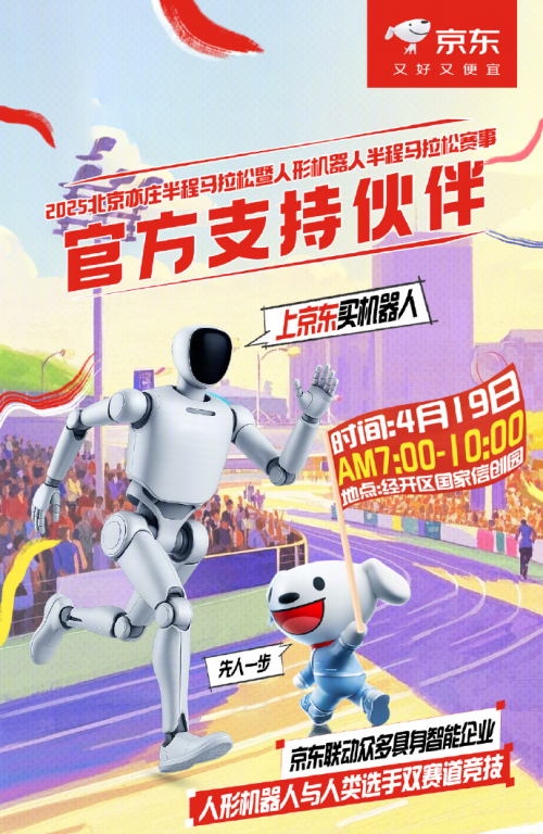 首次机器人参赛的亦庄马拉松将于4月19日开赛,来京东不但能入手赛事同款机器人,还能参与机器人1元竞拍活动。未来,京东也将持续深化与智能机器人品牌的战略合作,让前沿科技切实服务于大众生活。