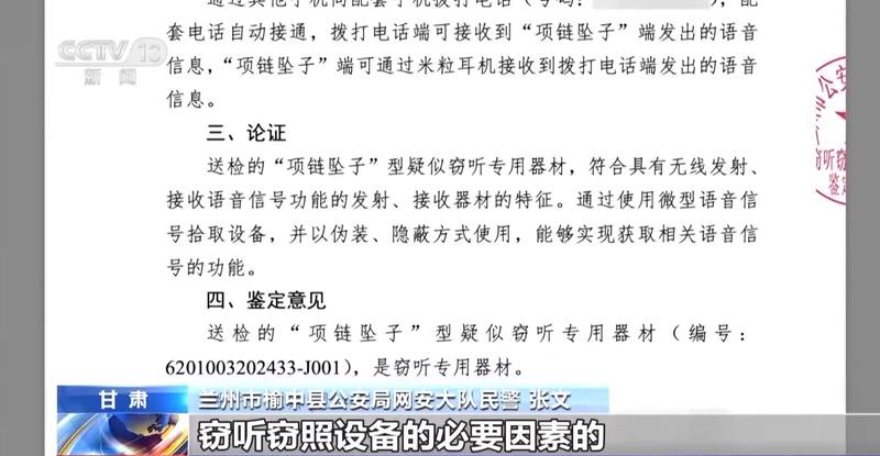 兰州市榆中县公安局网安大队民警 张文:我们要确定这副耳机具体功能是什么,包括它的距离、传输性质、是否属于窃听窃照设备。经过兰州市公安局司法鉴定中心鉴定以后,发现这副耳机构成了窃听窃照设备的必要因素。