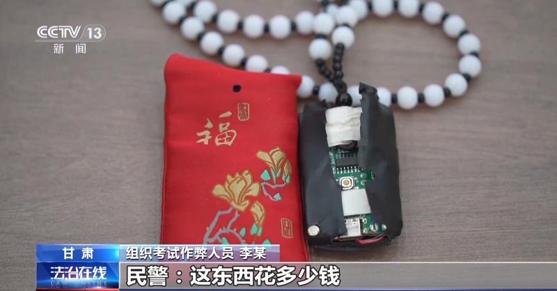 组织考试作弊人员 李某:这是赌博专用的,赌博专用的东西是比较隐蔽一点的,然后再用项链伪装一下。