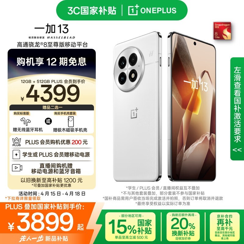 一加OnePlus 13旗舰手机京东特惠3835元起