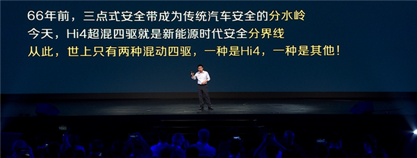 在发布会现场,赵永坡称,二代枭龙Max的推出,将在新能源市场刮起一场“安全为先、技术为本”的飓风,自此,世界上只有两种混动四驱,一种是Hi4,一种是其他。