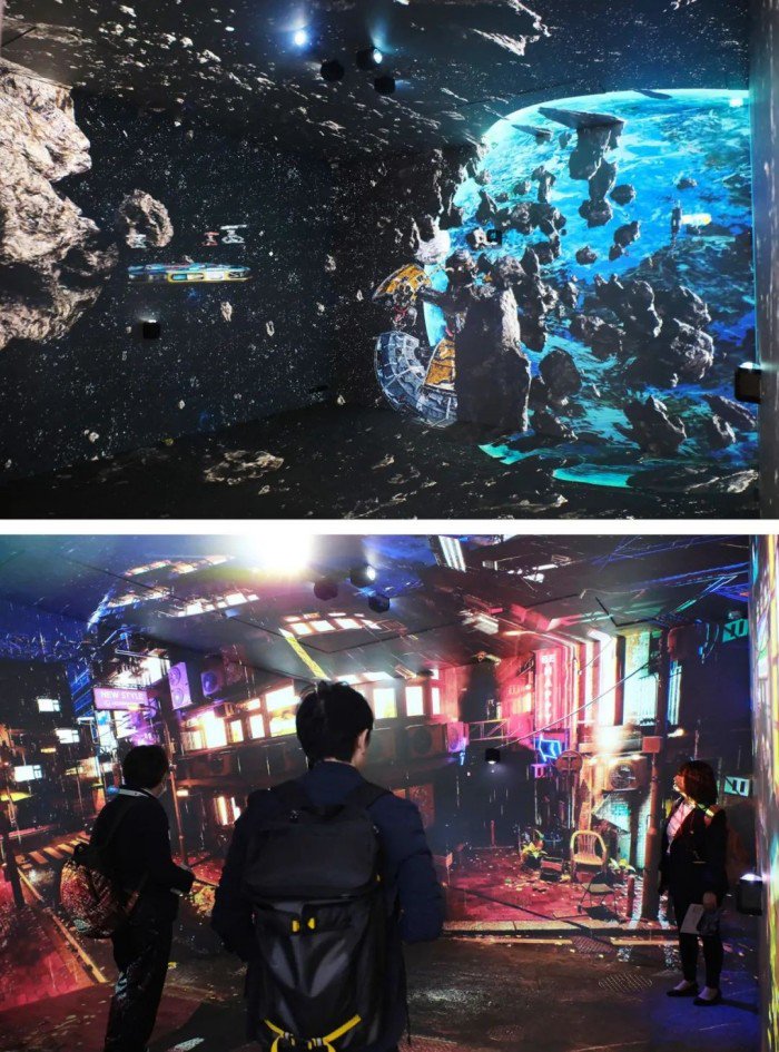 观众步入其中,仿佛置身于一个奇幻世界,从雨夜霓虹的街区到浩瀚星空,每一处场景都栩栩如生,通过动态光影和环绕音效的巧妙结合,为观众带来一场视听盛宴。