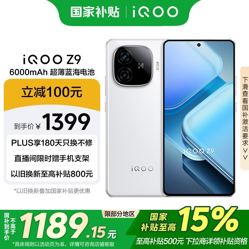 iQOO Z9 5G手机(8GB+128GB)京东优惠价1114元