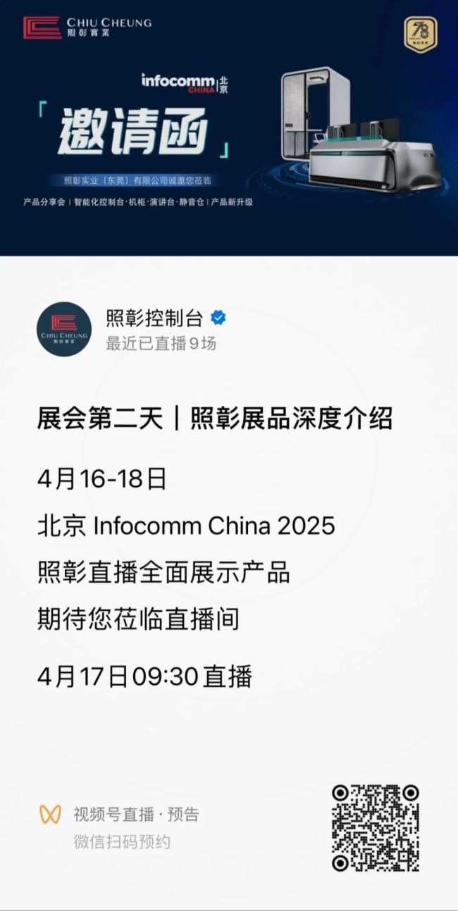 4月16日,备受瞩目的专业视听与集成体验行业盛会——北京InfoComm 2025 在国家会议中心盛大开幕。作为全球领先的控制台定制服务商,照彰携多款新产品惊艳亮相