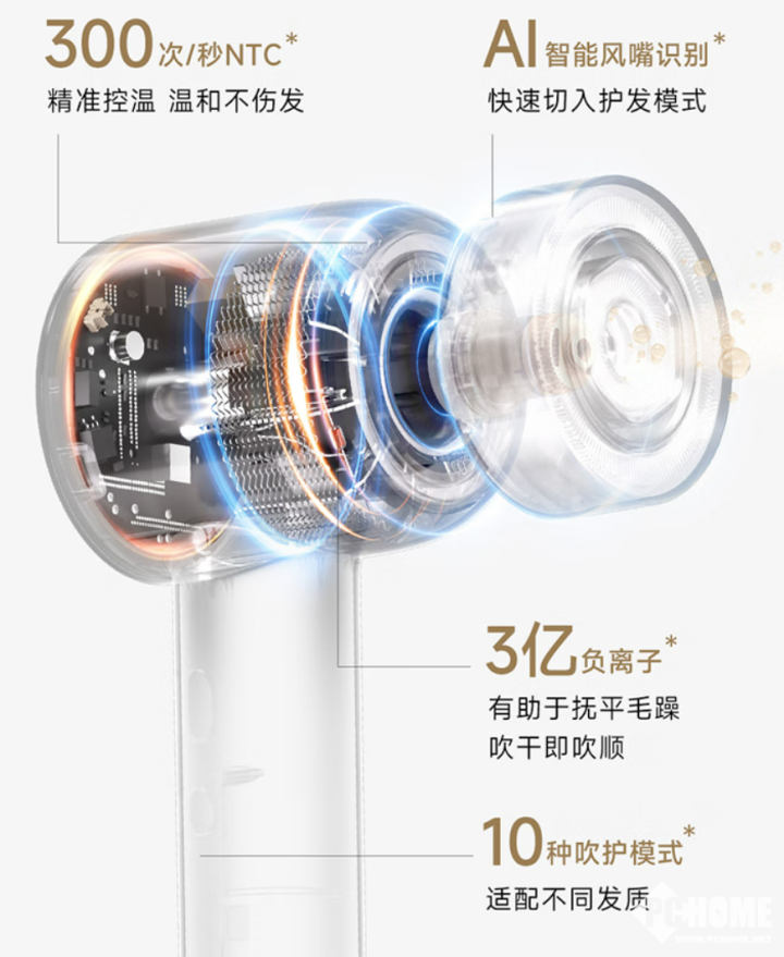 追觅G30 Pro提供了10种吹护模式,并且3亿负离子能抚平发丝毛躁;吹风机还支持300次/秒NTC,实现精准控温,不伤发丝。在风速方面,追觅G30 Pro支持110000转/分的快速干发,提高吹风效率,风速更高的同时风感柔和,头发不打结。