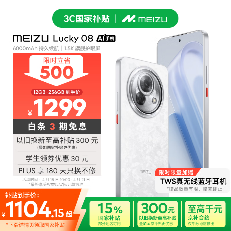 魅族MEIZU Lucky 08 5G手机大促至1064元