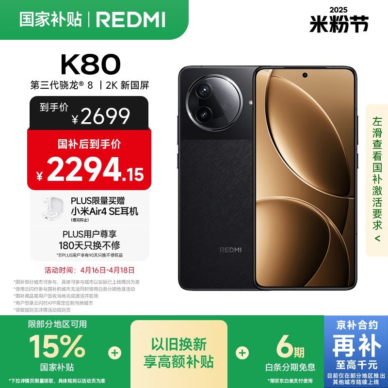 红米K80 5G手机(16GB+256GB)超值优惠低至1993元