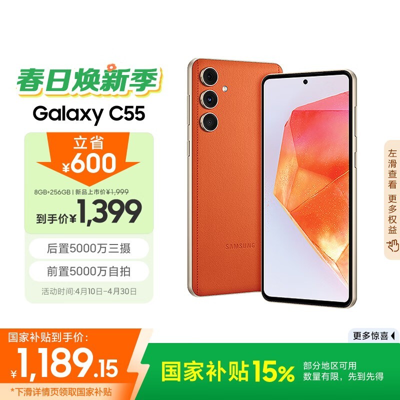 三星Galaxy C55 5G手机8GB+256GB缤纷橙活力出彩