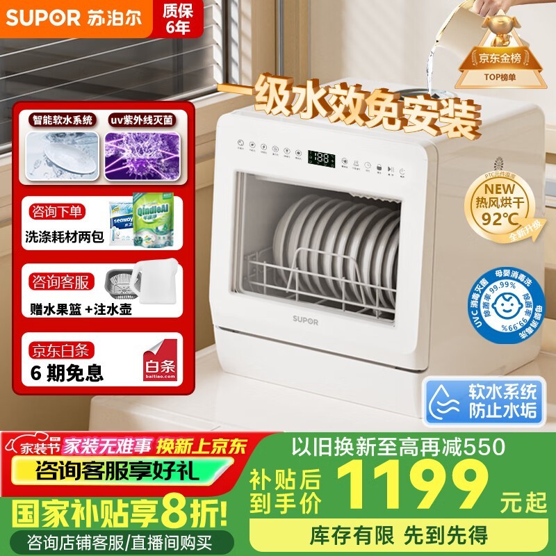 苏泊尔台式洗碗机92℃高温除菌洗消烘存一体
