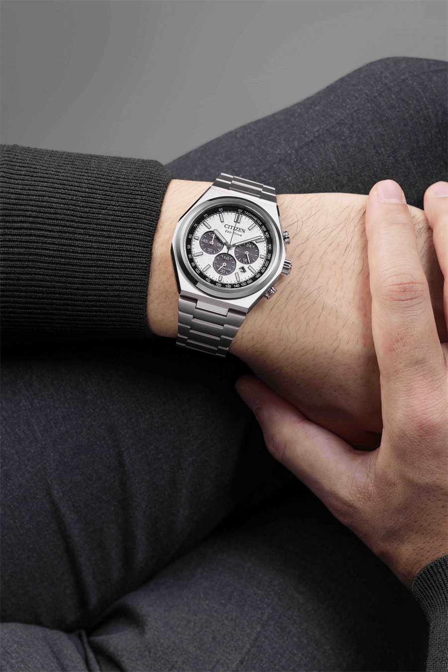 从1970年西铁城首次将钛金属引入制表业,到2000年革命性舒博™钛的问世,西铁城始终以“轻盈”与“坚韧”的平衡哲学颠覆传统认知。Zenshin系列腕表的表壳与表链均采用舒博™钛材质,最轻仅86克,佩戴时近乎无感,却拥有超越不锈钢5倍的耐刮擦性能——即便在砾石滩磕碰或灌木丛刮蹭,表身仍能保持崭新质感。其表面经Duratect技术处理后呈现冷冽金属光泽,低致敏亲肤特性即使全天佩戴亦如丝缎贴合,10Bar防水等级更可直面暴雨、汗渍甚至浮潜挑战。这种“举重若轻”的智慧,恰好契合现代户外爱好者对装备的核心诉求:性能强悍不妥协,佩戴体验零负担。