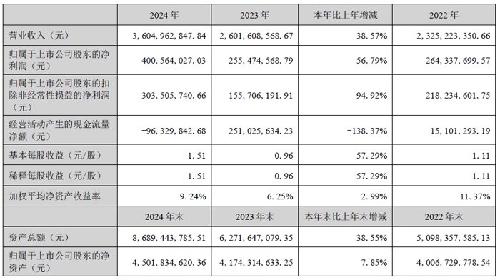 4月16日,宁波江丰电子材料股份有限公司发布2024年年度报告。报告期内,公司实现营业收入36.05亿元,同比增长38.57%;实现归母净利润4.01亿元,同比增长56.79%;实现扣非净利润3.04亿元,同比增长94.92%。